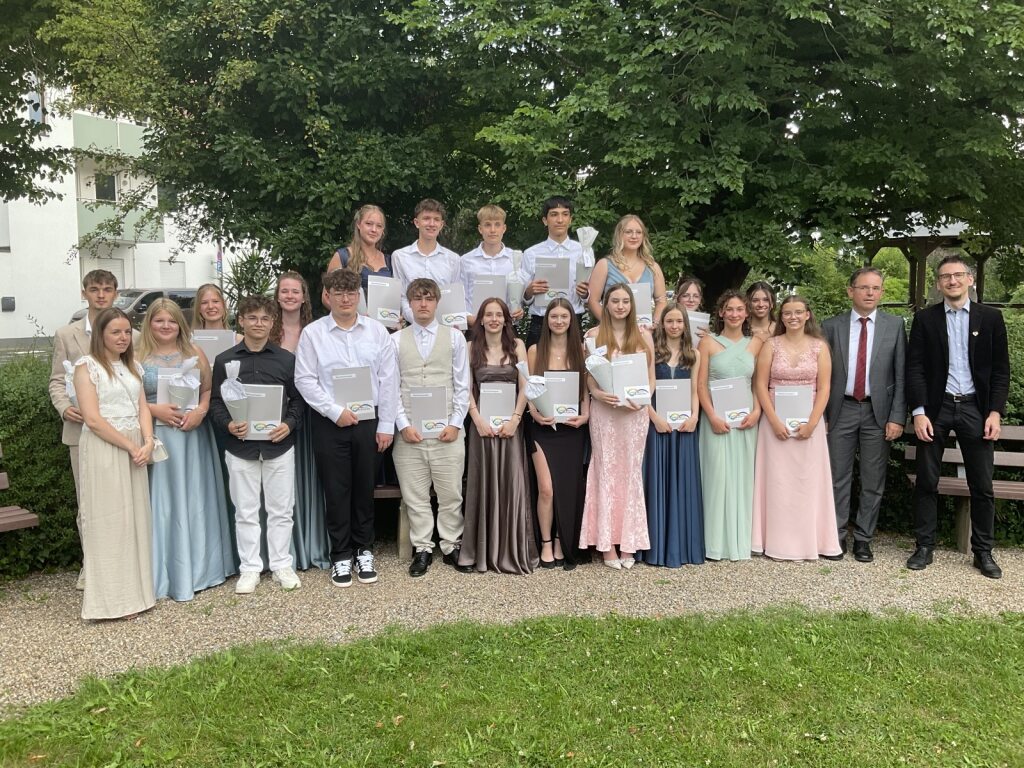 Am vergangenen Freitag, den 25. Juli 2025 konnte die Staatliche Realschule Bad Brückenau in einem feierlichen Rahmen die Absolventen der Klassen 10a und 10b verabschieden. Musikalisch begleitet vom Schulchor unter der Leitung von Herrn Dennis Ankert begrüßte die Konrektorin Nicole Wirth die Schülerinnen und Schüler, ihre Eltern und zahlreiche Ehrengäste in der Georgi-Kurhalle. Nach „Love Story“ von Indila, ein Instumentalstück, das die beiden Zehntklässler Lisanne Fischer und Konstantin Reusch am Cello und Klavier vortrugen, setzte der Schulleiter Herr Michael Kreil die Reihe der Reden fort und gratulierte den Absolventinnen und Absolventen